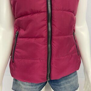 Free Country Puffer Vest Jacket Women's Sz M Full Zipper Pockets Burgundy Black