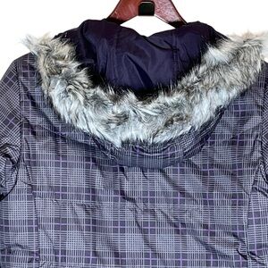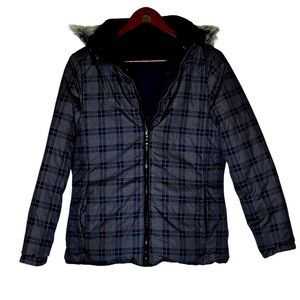 Free Country Reversible Down Plum/plaid Women’s Jacket Small