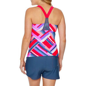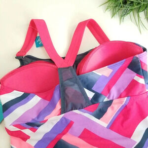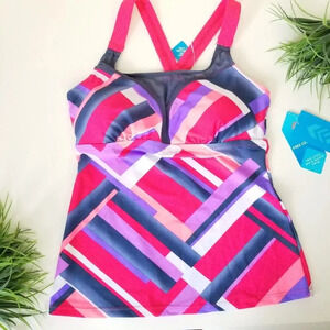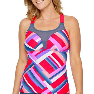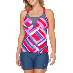 Free Country Size Medium Tankini Swimsuit Top New Ruby/Slate Built-In Bra