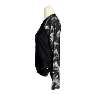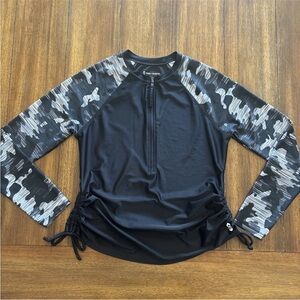 Free Country Top Womens S 4/6 Gray Black Camo Arms Drawstrings 1/4 Zip Pullover