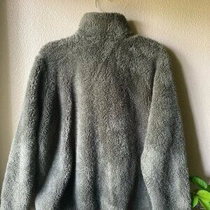 Cozy olive teddy jacket by Free Country. Soft texture with button closure. Ideal for chilly weather.
