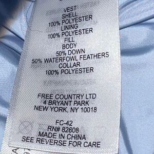 Free Country Women's Blue Puffer Vest Down Feather Pockets Small EUC