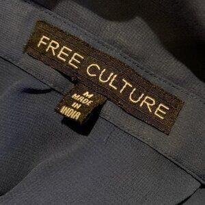 Free Culture. Size Medium. Sheer Chiffon Long Sleeve Button Cuff Shirt. Pockets. Made in India. Center back 25.5". Sleeve 23.5". Bust 35.5". Excellent pre-loved condition. No spots, tears or damage.