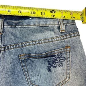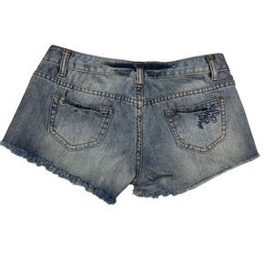 Free Culture Women Denim Shortie Shorts Embroidered Paisley Fringe Hem Blue Sz 3
