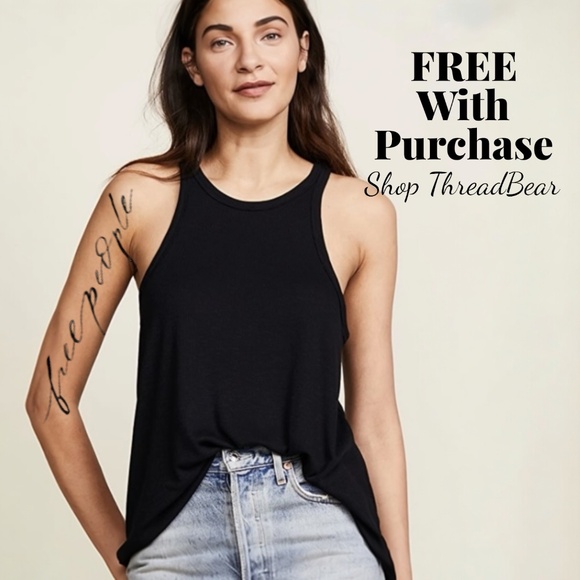 ✶Free✶ EUC Black ✵☽Free People☾✵ Long Beach Ribbed Racerback Swing Tank | Medium