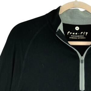 Free Fly Mens Size M Sweater Lightweight Bamboo 1/4 Zip Thumb Holes Black