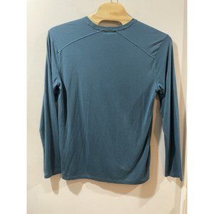 This Free Fly performance shirt for men is perfect for any occasion, whether you are traveling, working out at the gym, or simply relaxing casually. The shirt is a solid blue color with a crew neck and pullover closure, featuring long sleeves for added warmth. The material of the shirt is a blend of polyester and bamboo, creating a comfortable and breathable fabric that is perfect for any activity.