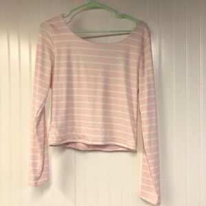 Free For All Pink Striped Long Sleeve Cropped Top XL