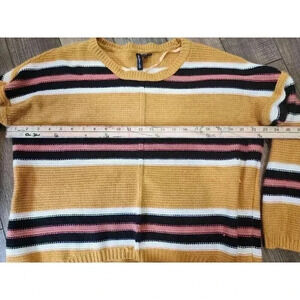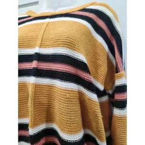 This Free For All sweater is perfect for any casual occasion. The burnt orange color and striped pattern make it a great addition to any wardrobe. The long sleeves and round neckline provide warmth and comfort during the colder seasons of fall, winter, and spring.