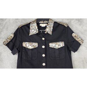 Free For Humanity Shirt Womens Small Black Sequined Button Up Short Sleeve Retro