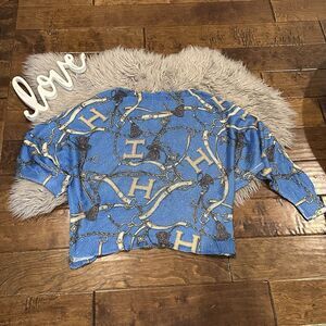 Free For Humanity Sweater in Very Good Condition. It is a Viscose Halston Graphic with Metallic Chains. It is Made Italy. It measures approximately 25 from armpit to armpit and 22.5 from shoulder to hem. Any questions, please ask!