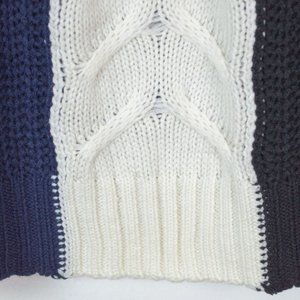 Add vibrant style to your outfits with a cozy cable knit sweater flaunting a colorblock pattern and bold fringe.
