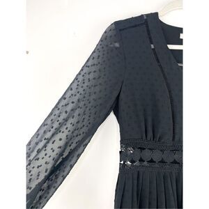 Free Generation LA Black V Neck Boho Cutout Long Sleeve Mini Dress Size M