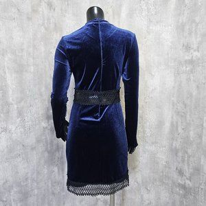 Free Generation LA Womens M Blue Velvet & Black Peekaboo Long Sleeve Mockneck Mini Dress