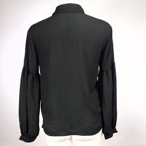 Free Generation Los Angeles Women's Balloon Sleeve Semi-Sheer Button Front Top