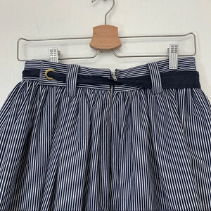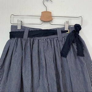 Free Generation Pleated Skirt Medium Blue White Pinstripe Full Flowy Tie Waist