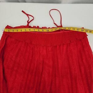 Free Generation Size Large Red Micro Pleat Swiss Dot Ruffle Maxi Dress G8