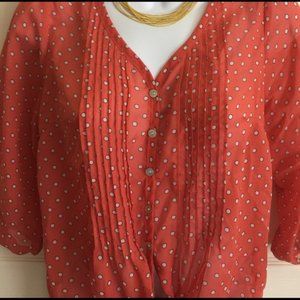 Free Gift 🎁 Timing Orange Sheer Polka Dots Blouse. Size Medium. Pre-loved