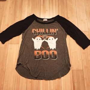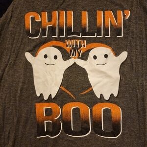 Free Kisses Chillin With My Boo Ragland Tee Shirt Women's Large L Grey Black EUC