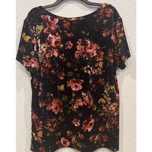 Free Kisses Floral Velvety Short Sleeve Top with Crisscross Neck Size 1X