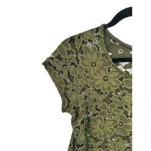 Free Kisses Olive Floral Lace Top Blouse Shirt Size Small Sheer