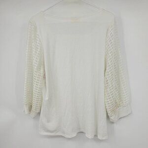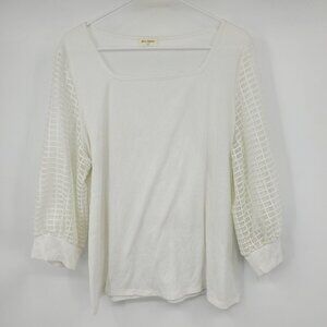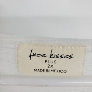 Free Kisses Plus Boho Square Neck White Cutout 3/4 Sleeve Blouse Shirt Top 2X