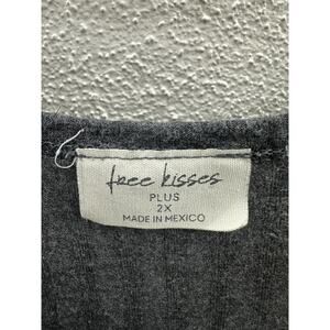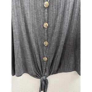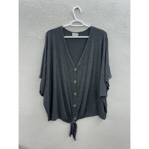Free Kisses Womens Shirt Plus Size 2X Gray Button Up Short Sleeve Front Tie