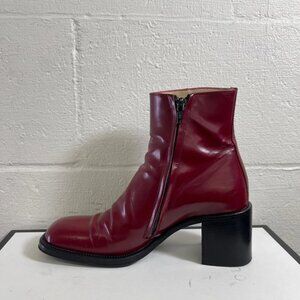 Free Lance 4470 Red Patent Leather Ankle Boots Zip Square Toe Women's 36 EU/6 US