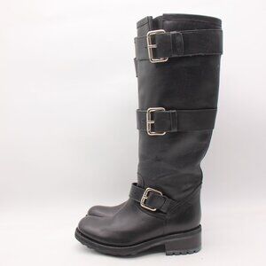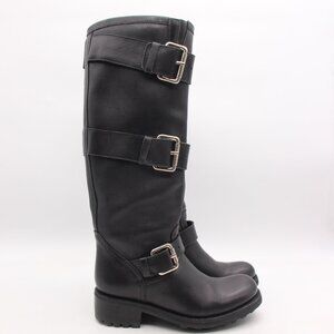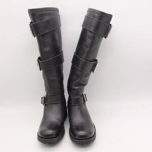 Free Lance Women's Size 35.5 Black Leather Buckle Biker Knee High Boots