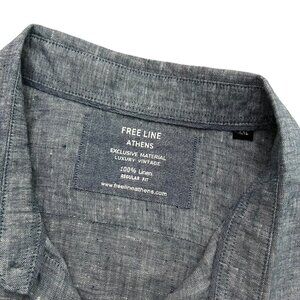 Free Line Athens Mens Linen Button Up Shirt Blue Size XXL Breathable Regular Fit