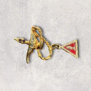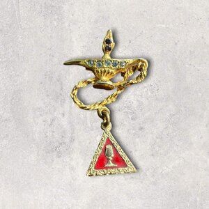 Free Mason Lapel Pin Cross Genie Lamp Rhinestone Shriner Lodge Goldtone Vintage