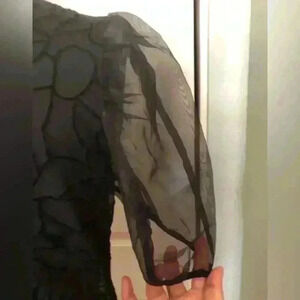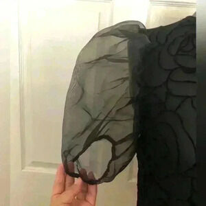 Free Misses black lace organza puffy short sleeves Medium