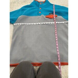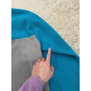 Good condition. pre-owned. Mark on sleeve. The color looks blue in the photo but it's more of a teal or turquoise. Fleece, 1/4 Snap, Fleece, Retro, Winter, Outdoors. M0406