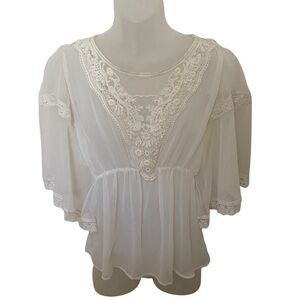 Free PEOPLE Off-White Sheer Boho Lace Blouse Women SP Small Petite
