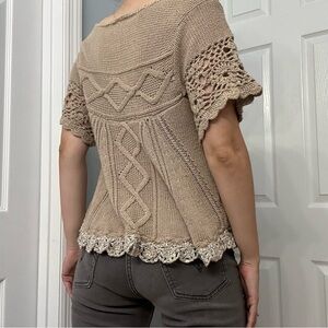 Free Peeple Top Knit Crochet Boho Fairy Tan Neutral Casual Festival Size Small