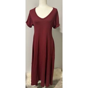 Free People Beach Meadow tee maxi dress in wild garnet has pockets tied in back light weight has stretch can fit a small