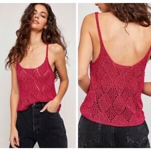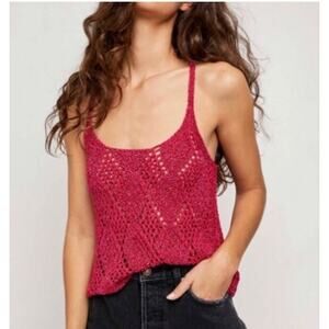 Free Peope Top M/L Crochet Pink Tank Glisten Love Potion