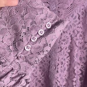 Elegant lilac lace top. Button-down style. Relaxed fit. Perfect for layering.