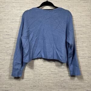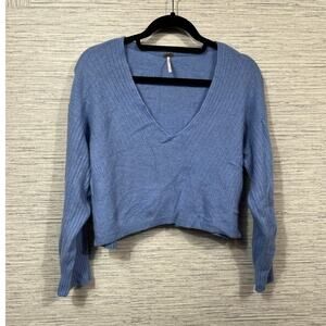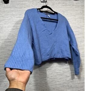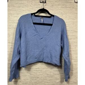 Free People 100% Cashmere Long Sleeves Crop Shirt / Size-Large / Color-Blue / Pre-Owned / Does Have Stain On The Right Sleeve Front And Back / Very Soft / Measurement-Pit To Pit 21.5” inches, Arm Length 18” Inches, Shoulder To Hem 17” Inches /