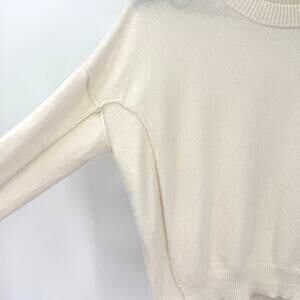 Free People 100% Cashmere Seamed Crewneck Sweater Ivory Oversized Size XS