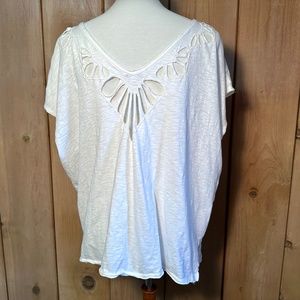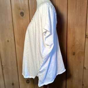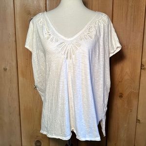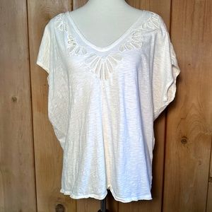 Comfortable soft cotton top is crafted with airy neckline with cutout details and an oversized fit.
