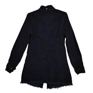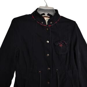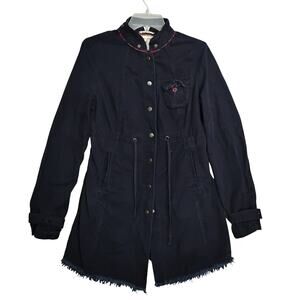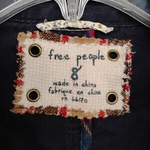 Free People 100% Cotton Utility Jacket Size 8 Navy Blue Tie at Waist Snap Button