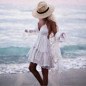 Free People 100 Degree Cream Dot Mini Halter Dress L