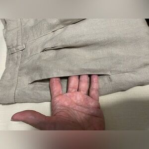 Free People 100% Linen Khaki Cream, Pleated, Wide Leg Cuff Pants Size 10.