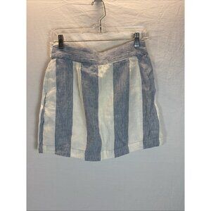 Free People 100% Linen Uptown Days Wrap Mini Skirt size 6 Blue White Stripes