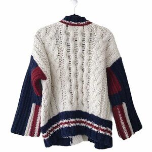 Free People 100% Wool East Gate Cable Knit Cardigan Sweater Bomber