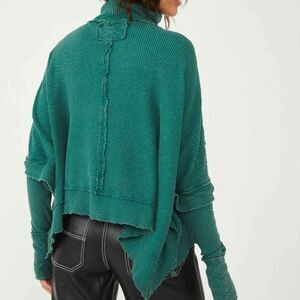 Free People Women's Moon Daisy Turtleneck Poncho Sweater Everglade Large