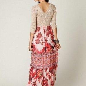 Free People 2 Piece Set S Ethnic Rose Maxi Dress Reversible Fur Embroidered Vest