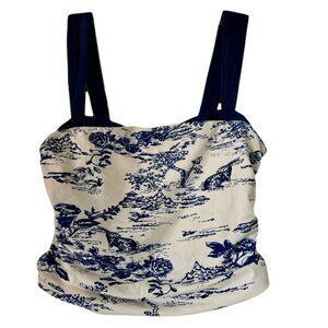 Free People 2 Tone Printed Tank Top Blue/White Size Medium