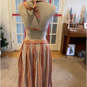 skirt is an A line Maxi length, button down in the front closure and 2 pockets